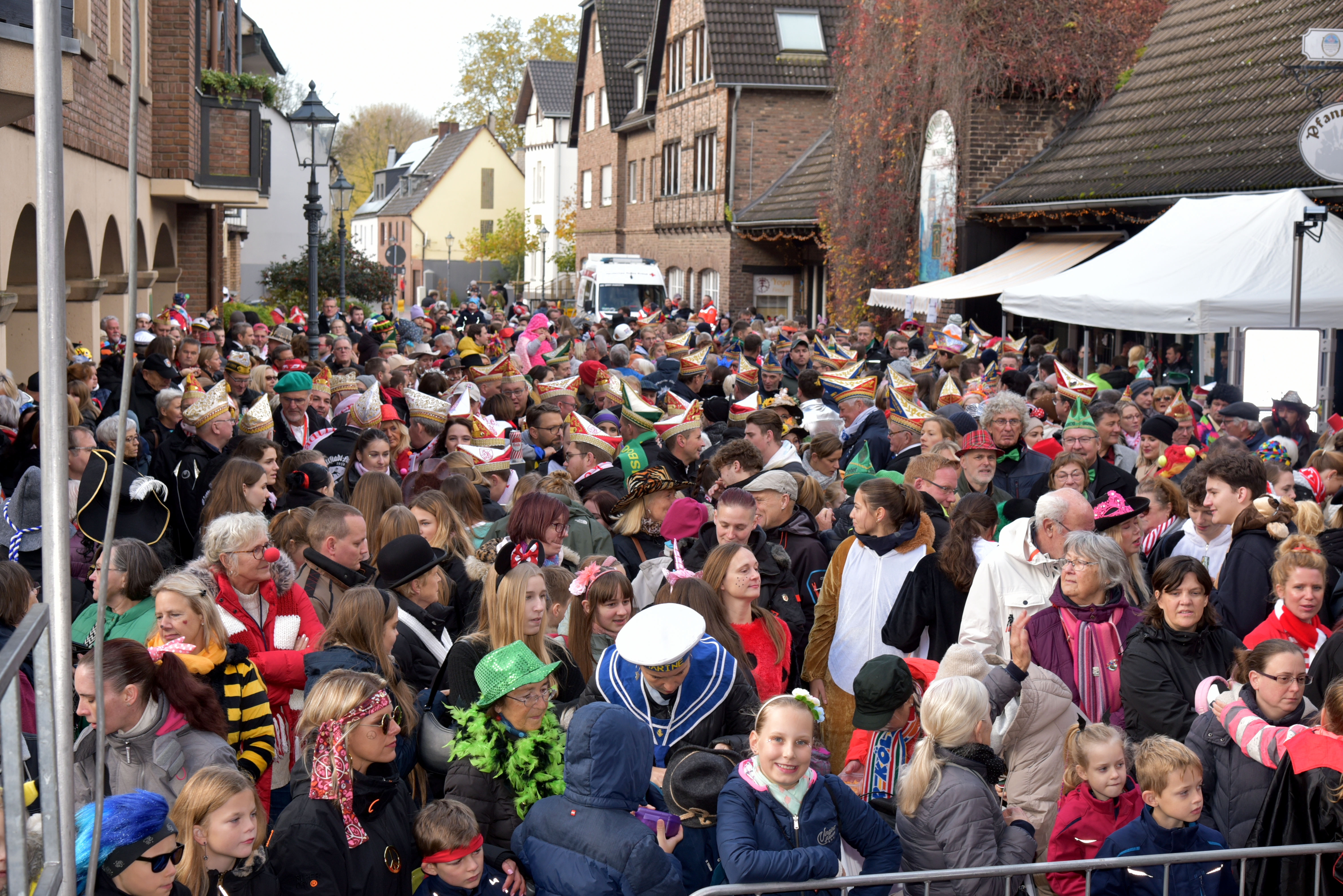 Mit einem kurzen Bühnenprogramm startet die GroMoKa (große Monheimer Karnevalsgesellschaft) in die jecke Zeit. Los geht es um 11:11 am Schelmenturm.